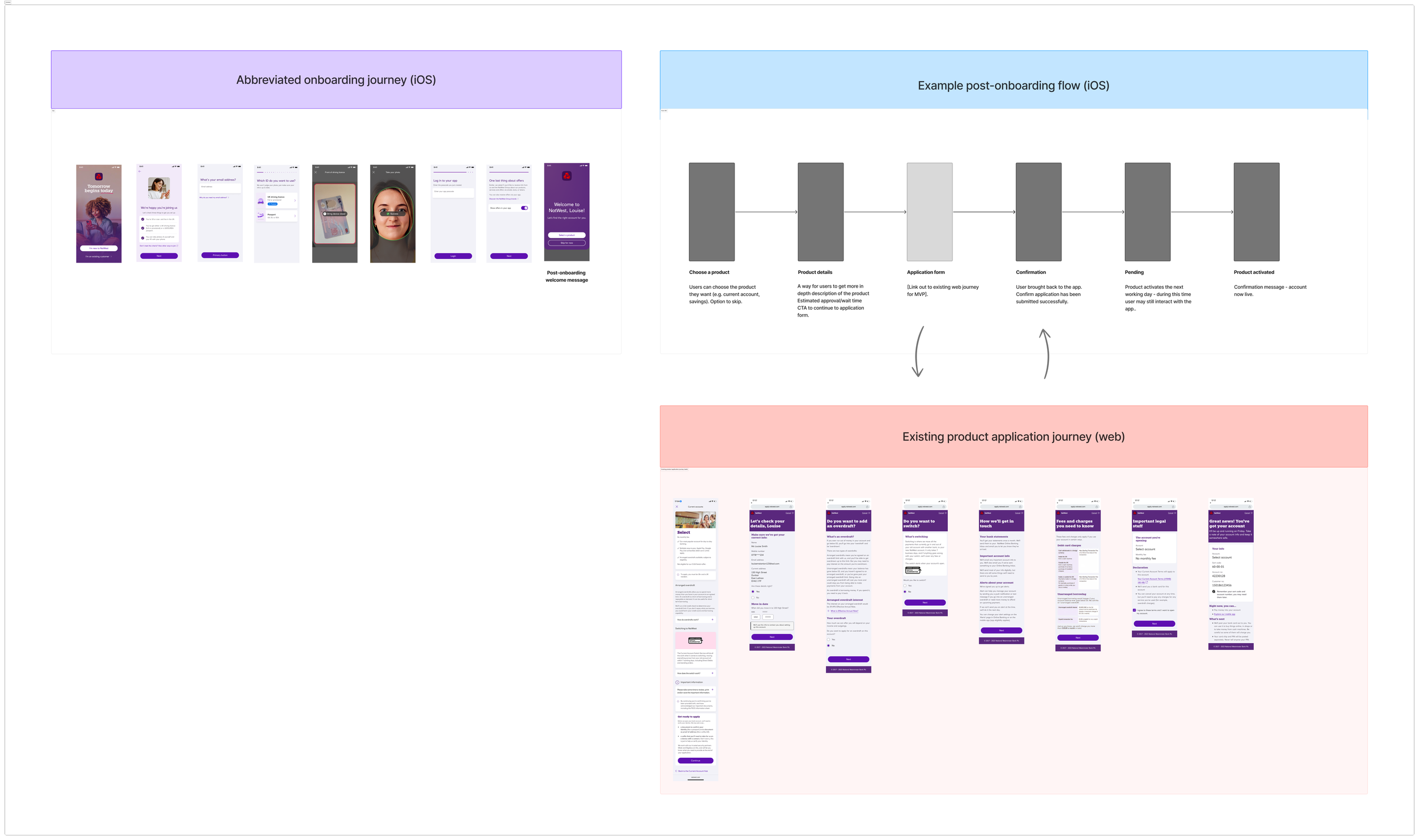 One output was this simple FigJam map showing how the new flow could connect with the existing web-based application process