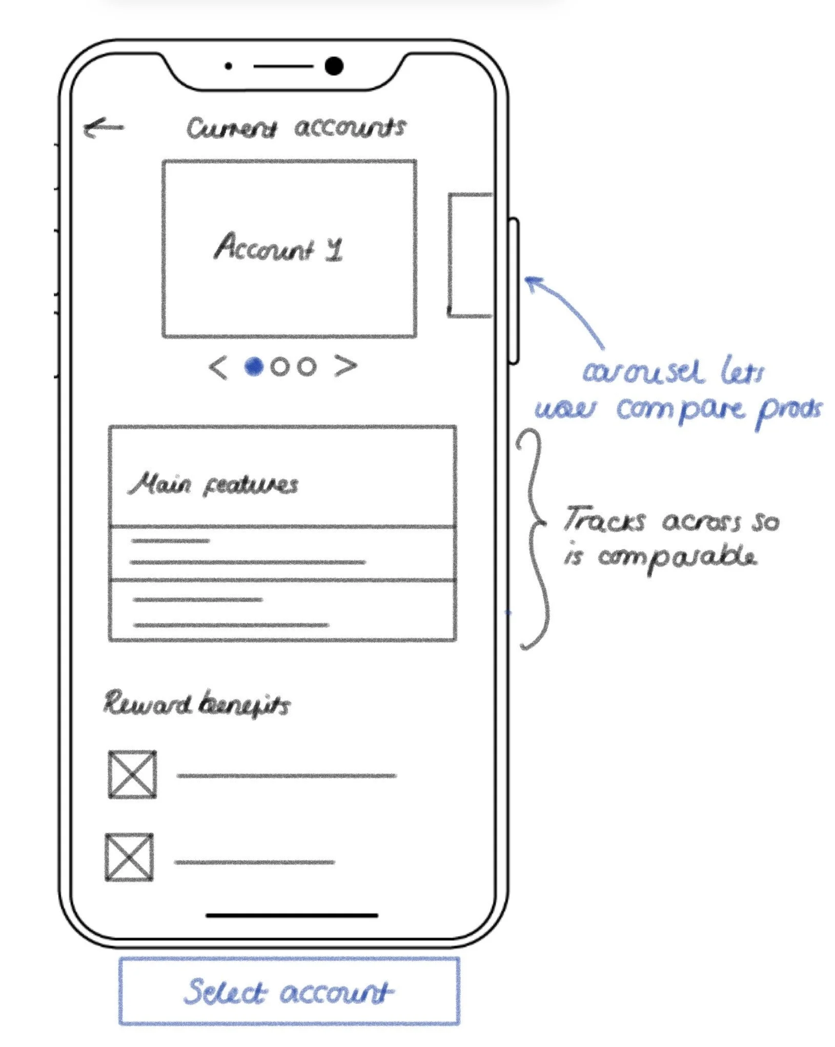I sketched out screens for seven key user pathways within the onboarding journey, from product discovery (below) to re-engagement. I then translated the strongest concepts into wireframes in Figma.